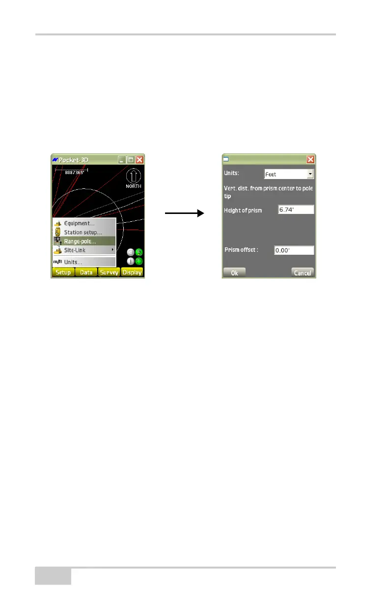 • Vert. dist. from prism center to pole tip – enter the measured