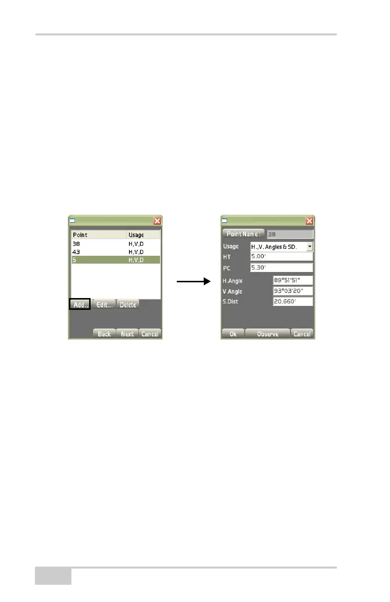 • PC – enter the prism constant of the control point’s prism.