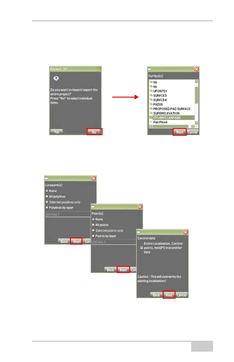 7. On the Linework(s), Point(s), and Control Data dialog boxes,