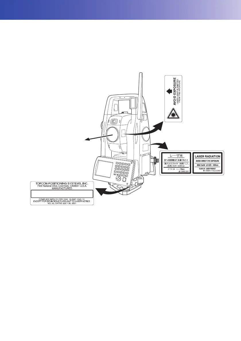 • EDM device is classified as Class 3R Laser Product when reflectorless measurement is selected.