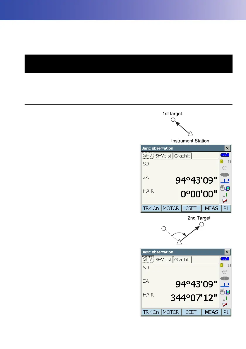 This section explains the procedures for basic angle measurement in Observation mode.
