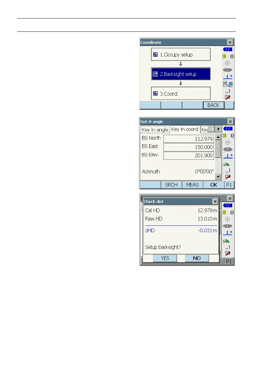 1. Select "Backsight setup" in <Coordinate>. <Set H