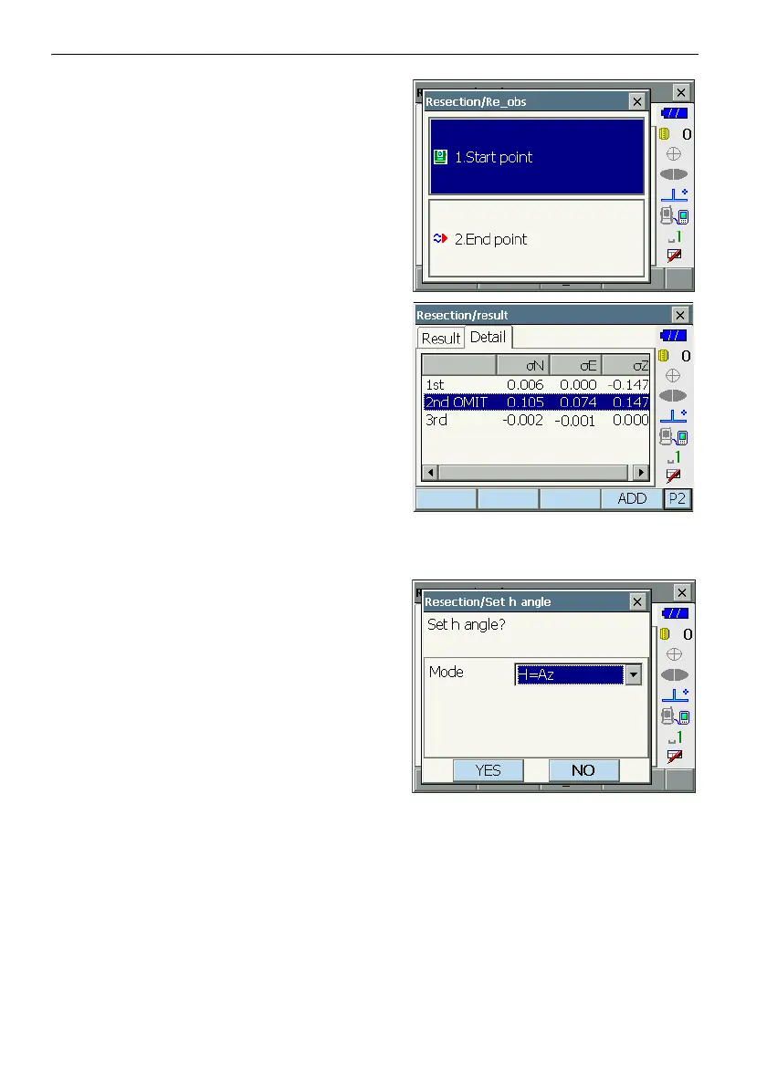 • It is also possible to perform resection measurement by pressing [RESEC] in the third page of