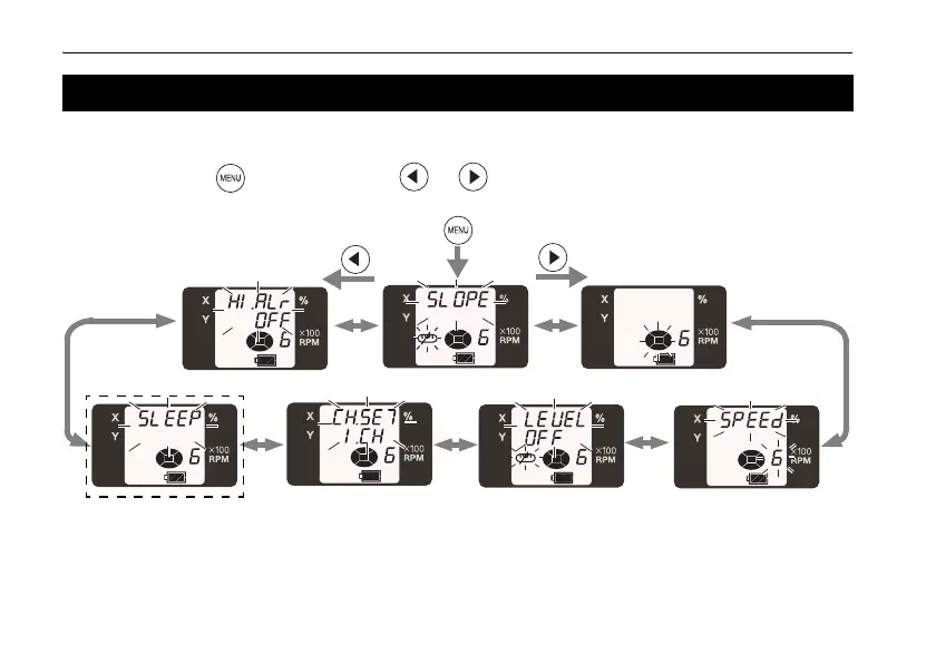 After pressing the key, pressing the or key will change the menu items and setting