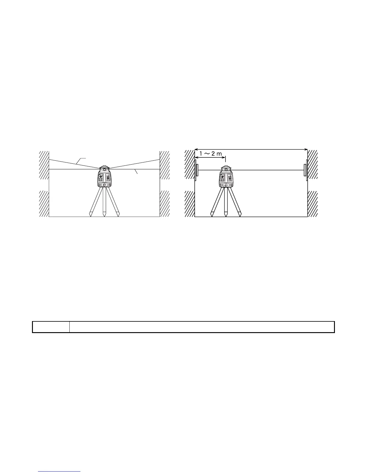 1 Set up the laser centered between two walls approximately 40m (131ft) apart. Orient the
