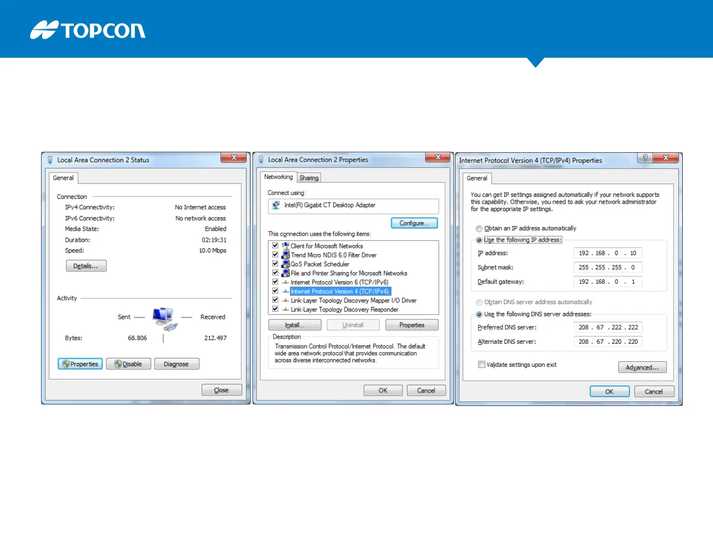 Topcon SL-100 - Ethernet Connection Setup; Network Configuration