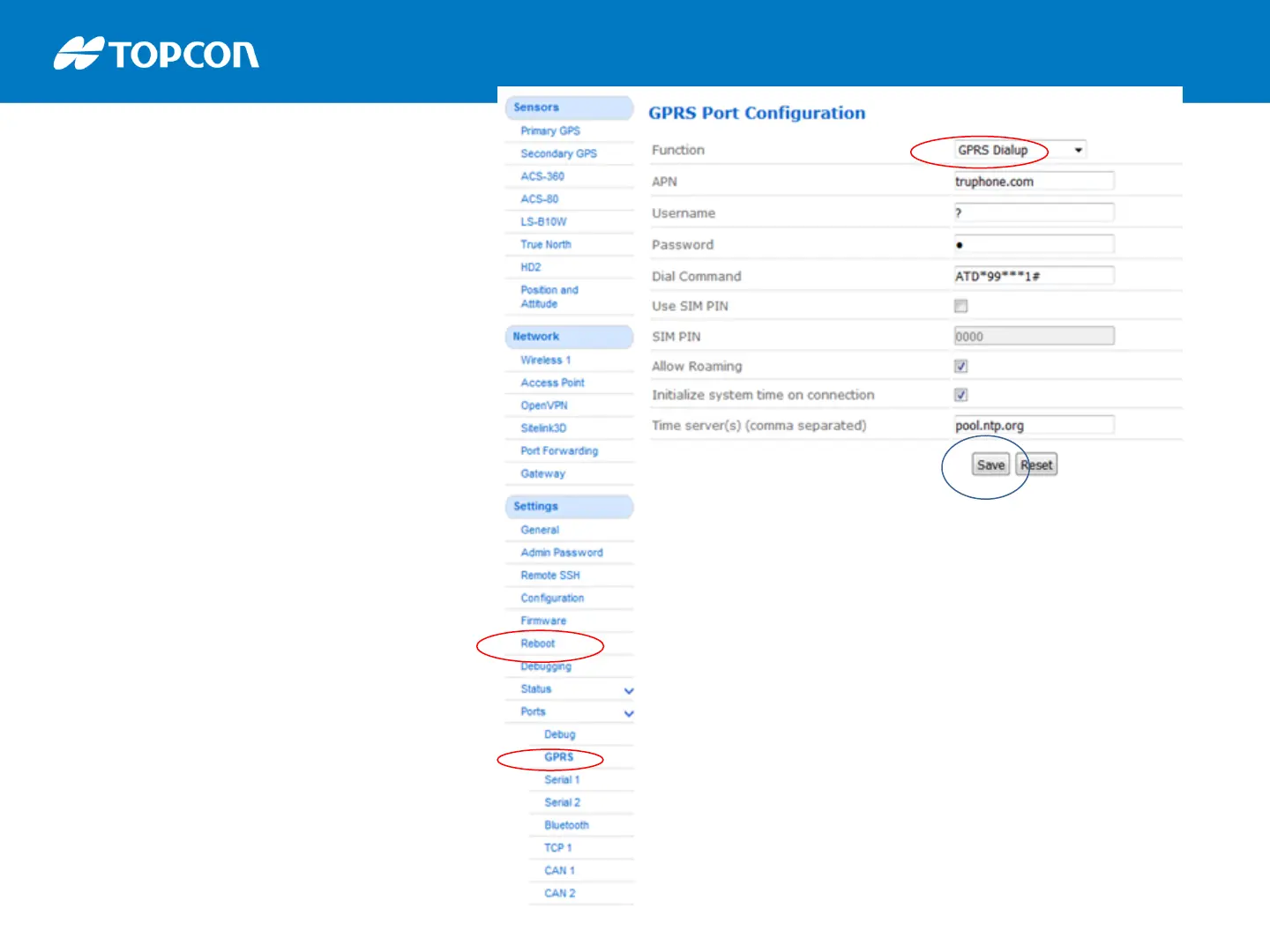 Topcon SL-100 - Configure SIM Card Settings; GPRS Port Configuration