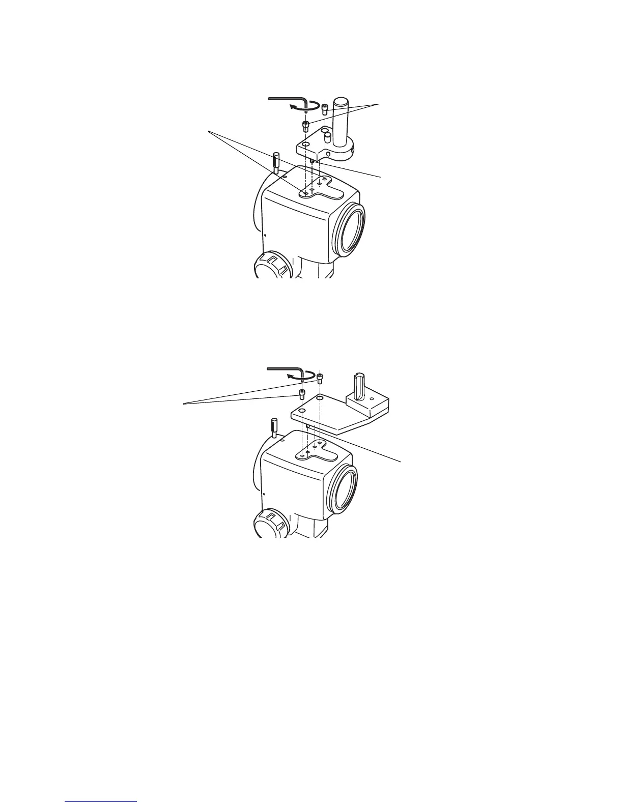 1 Align the locating pins of SO-TM3 into the holes of the SL-D4Z microscope, and fasten the