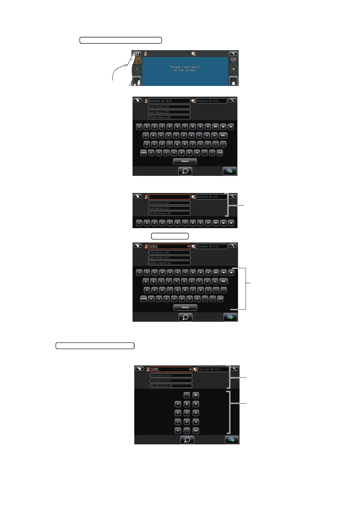 2 Tap the input window of patient ID to change the frame color to orange.