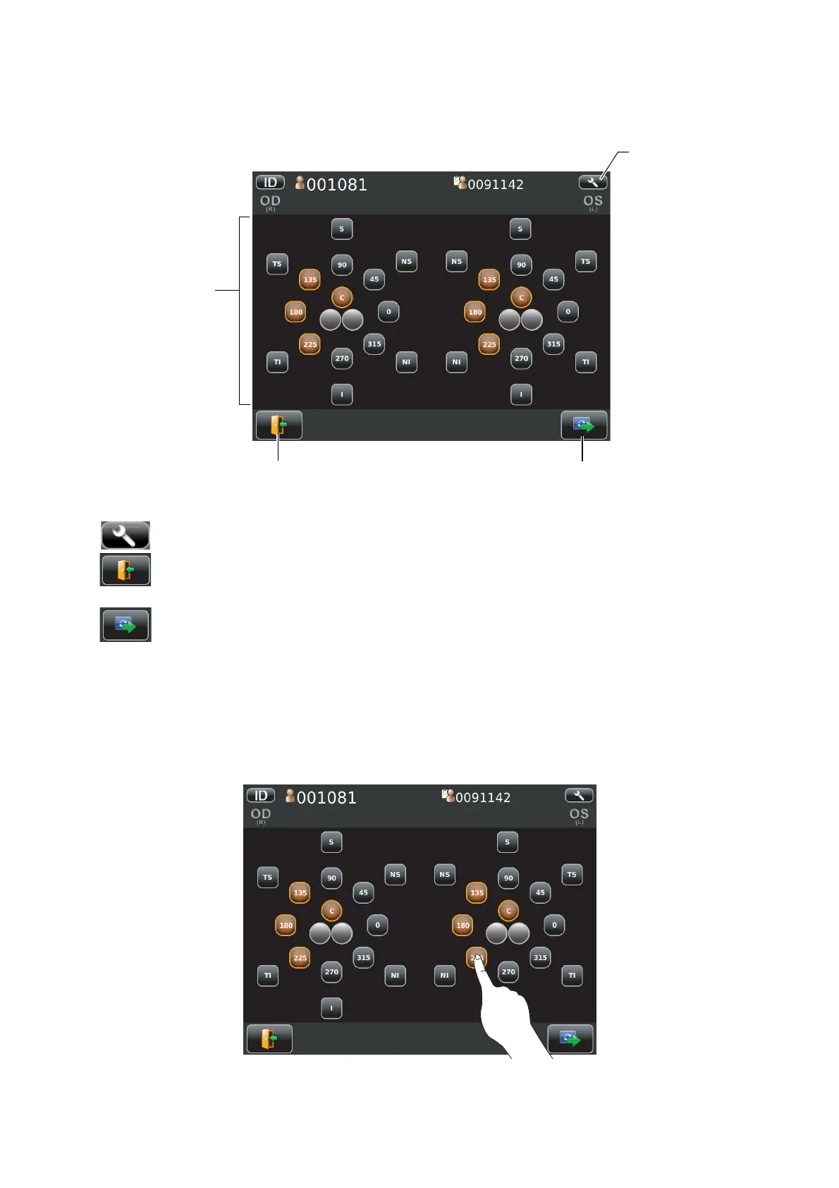 • The fixation target is lighted on diagonal location for selecting the desired position.