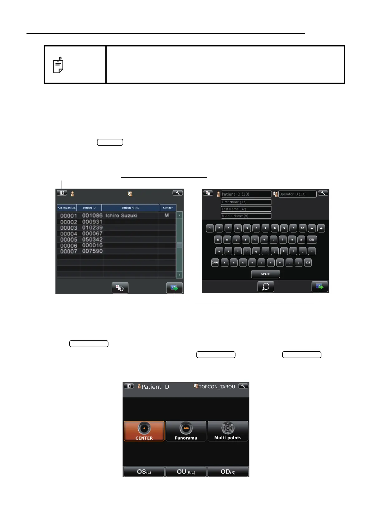 To enter the ID, enter patient ID by use of , finally tap the .