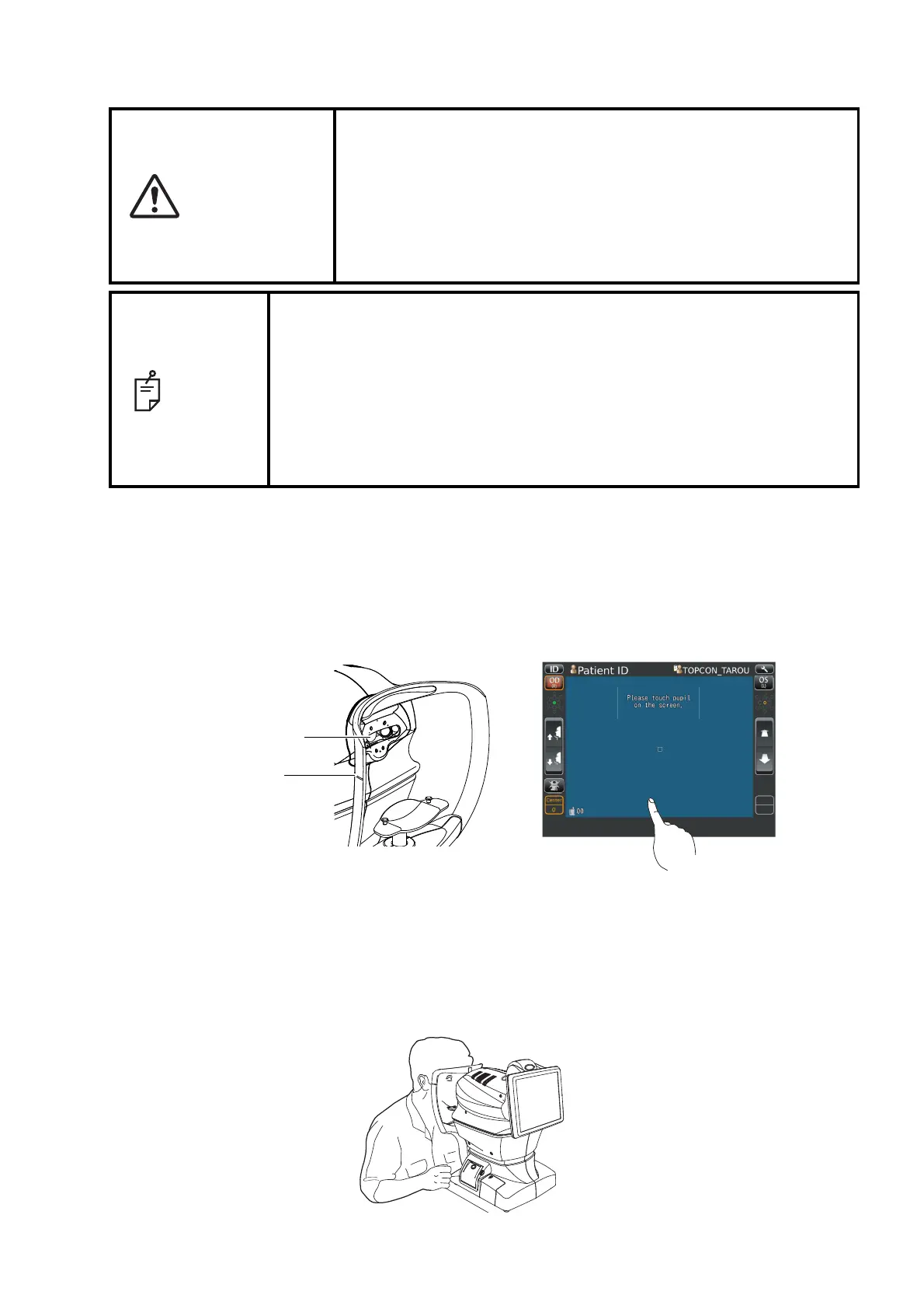 5 Place the patient's chin on the chinrest and check that his/her forehead is touching to the fore-