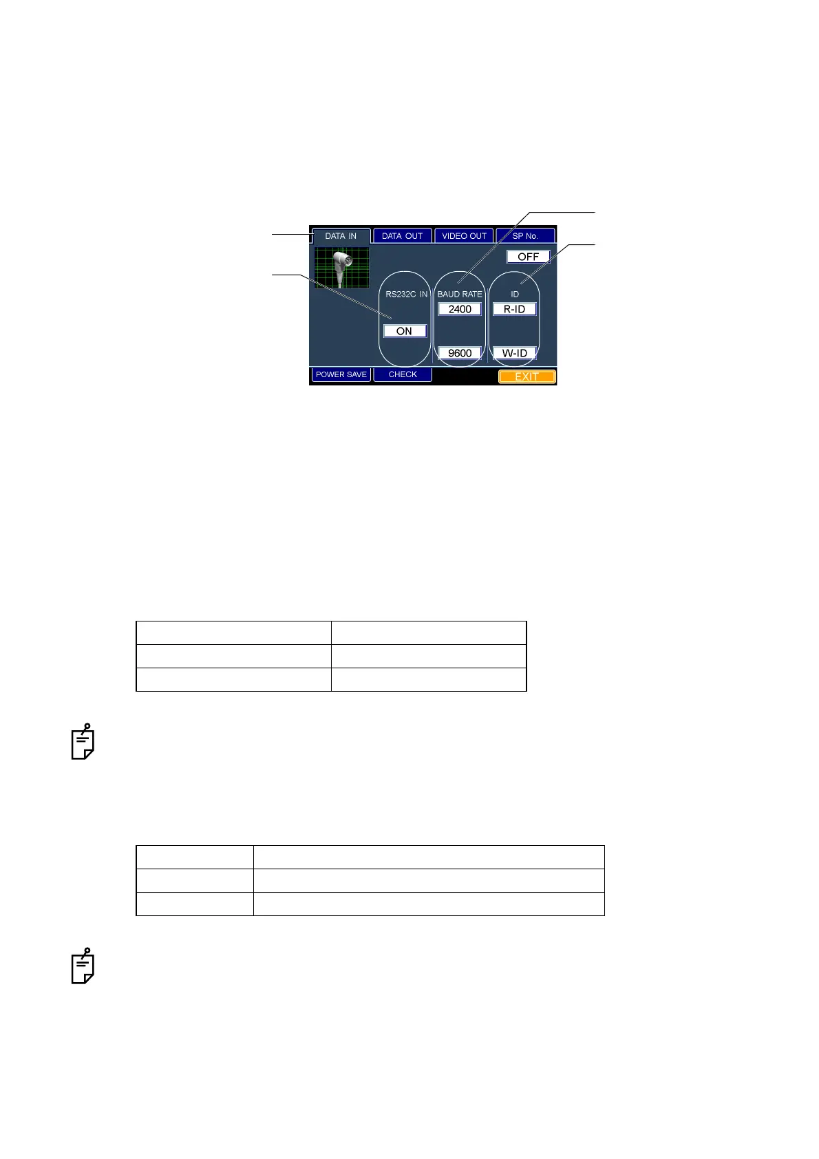 You can set the data input from the outside through the RS-232C input terminal.