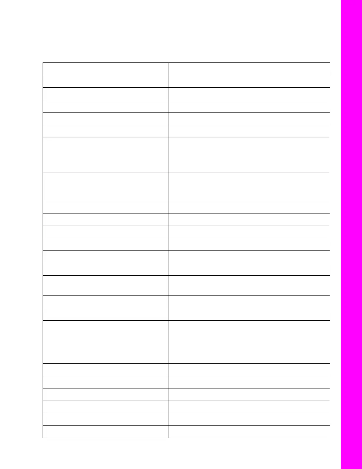 Table 16. PacCrest and SRL-35 Settings