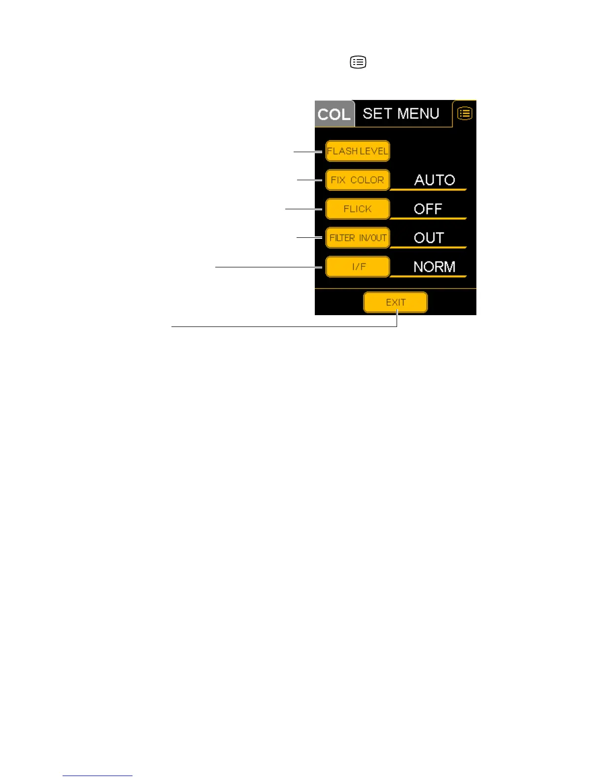 FIX COLOR (External fixation color selection)... Selects the color of the external fixation lamp,