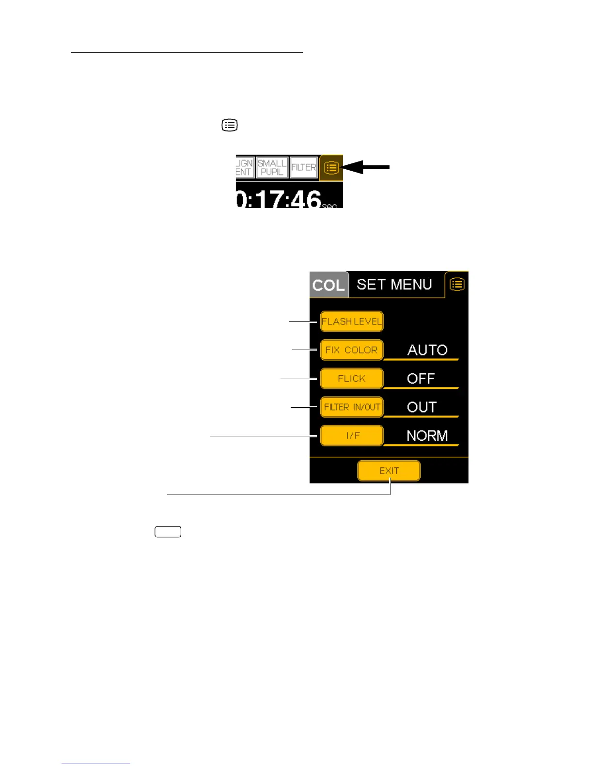 "FLICK" (external fixation blinking selection) and "FILTER IN/OUT" (filter link operation