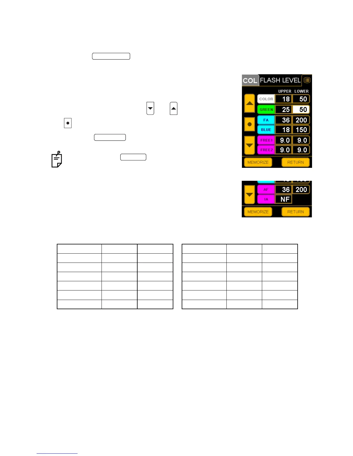 The "FLASH LEVEL" setting display appears.