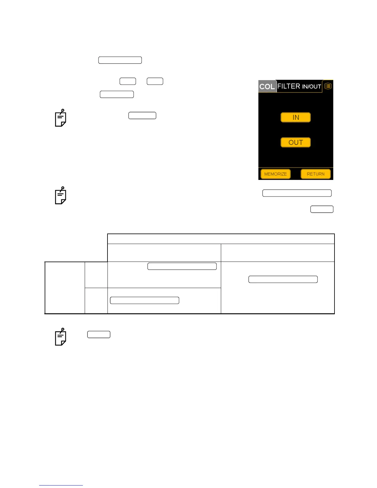 between the setting for "FILTER IN/OUT" on the "SET MENU" display and the