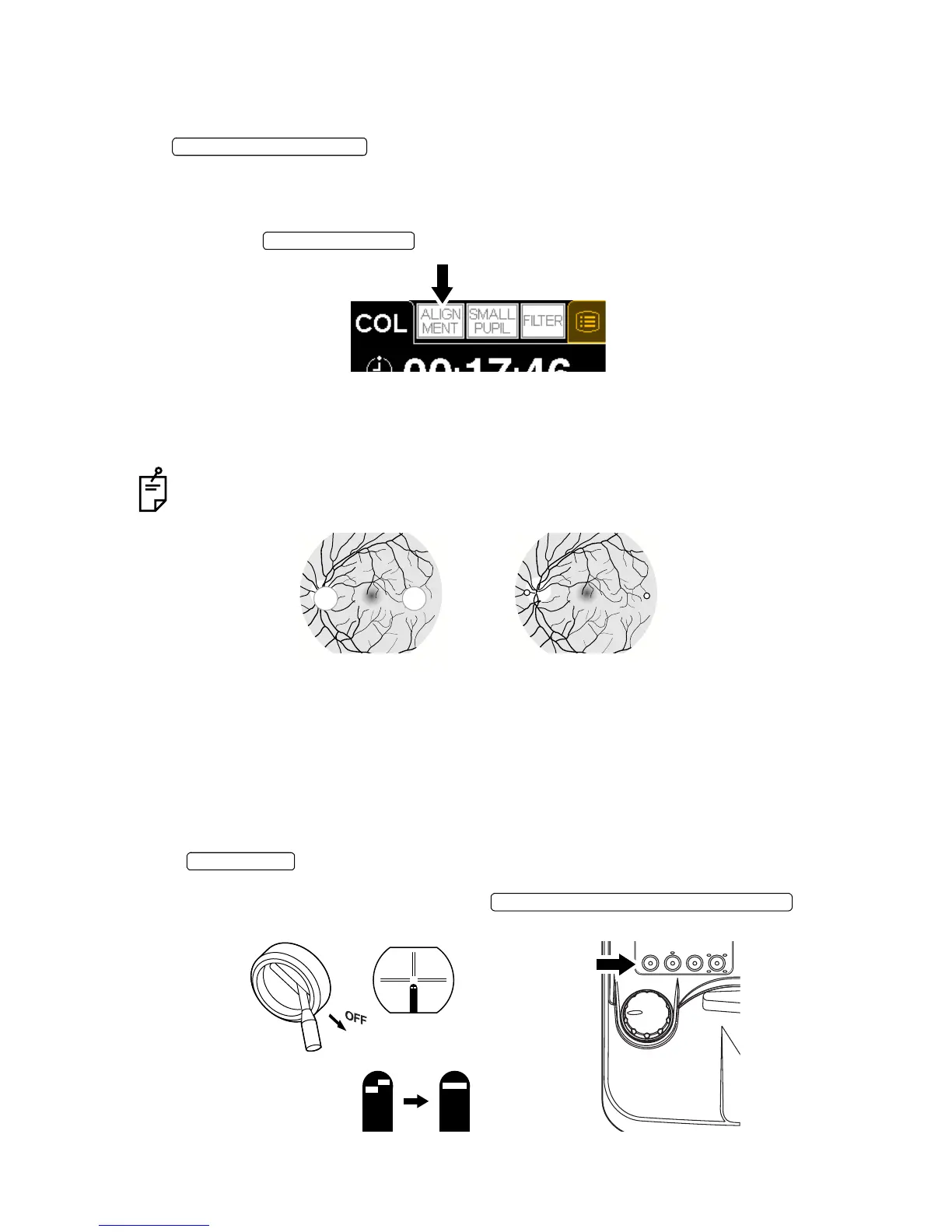 mination light becomes coaxial with the patient's pupil. The alignment bright spots will appear