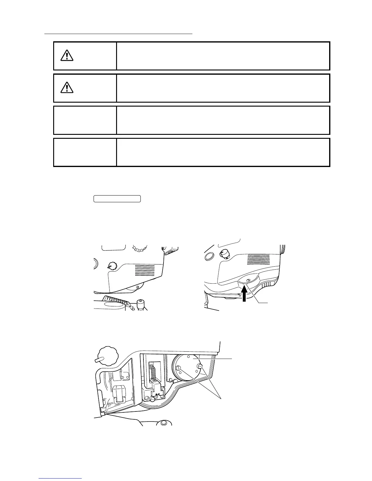 3 Remove the screw. Then, push the bottom of the lamp house cover and pull it forward to