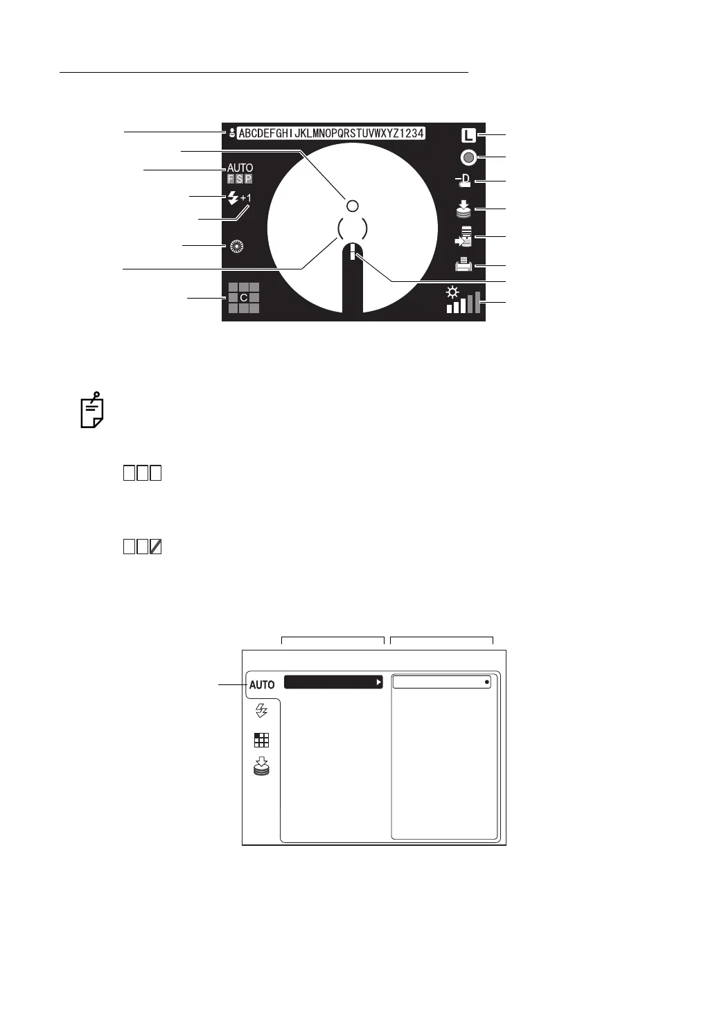 "S" is lit: The auto shoot function is ON. (Set it to "OFF", and "S" is darkened.)