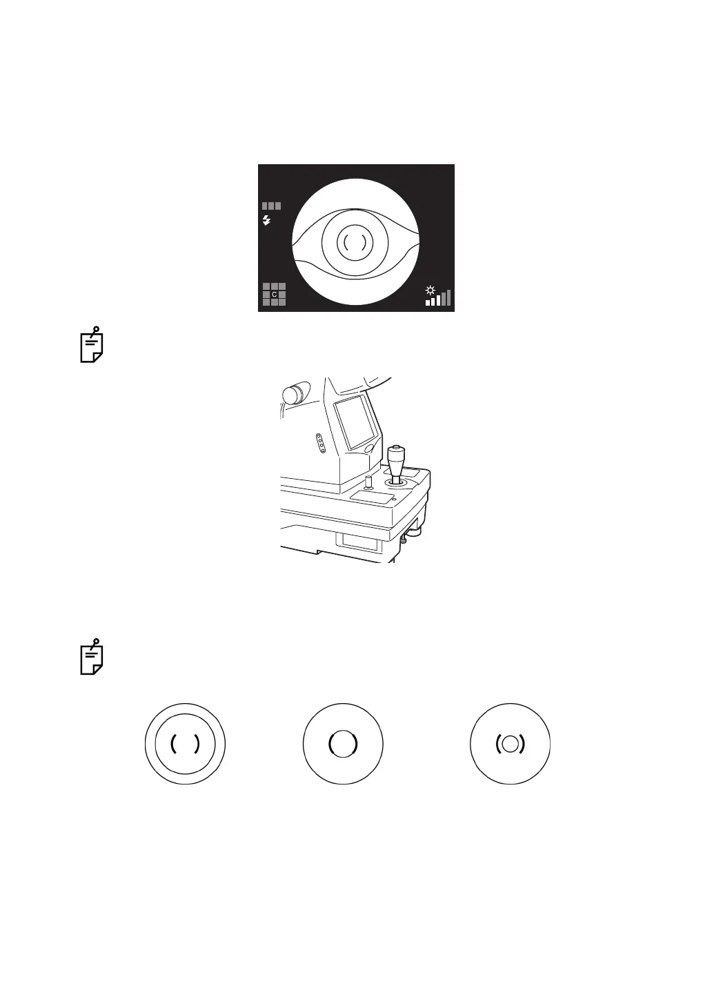 2 Move the instrument body using the control lever until you get the patient's eye centered