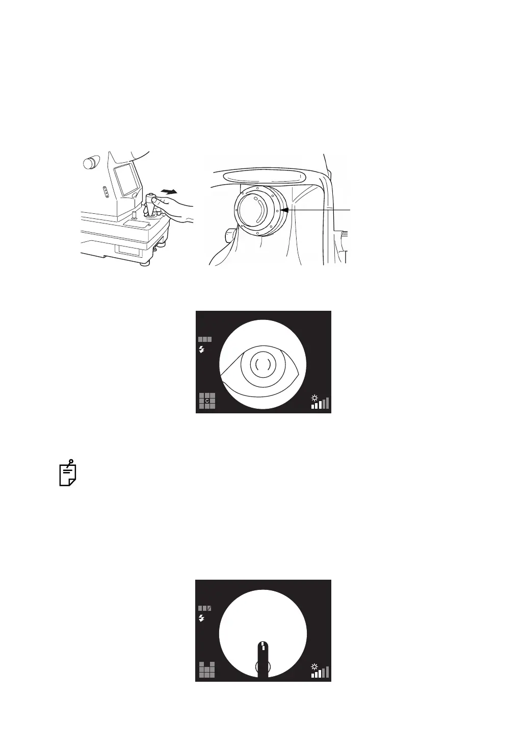 4 Slowly bring the instrument closer to the patient; the fundus image appears on the color