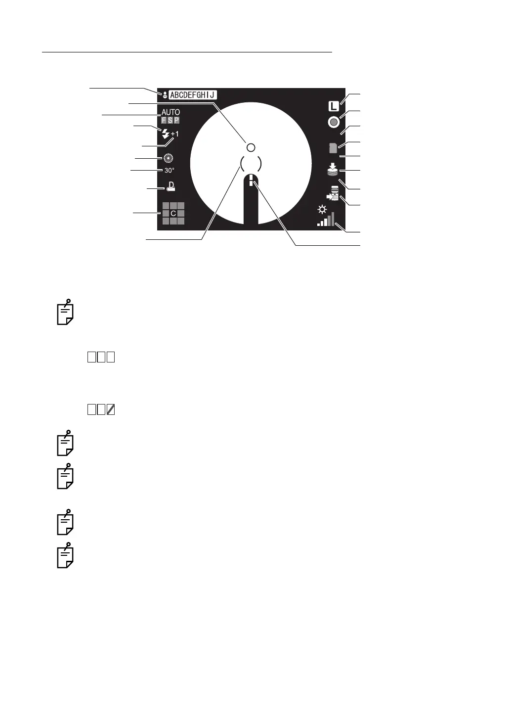"F" is lit: The auto focus function is ON. (Set it to "OFF", and "F" is darkened.)