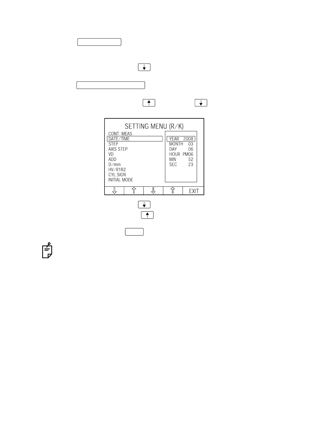 5 To exit from the menu, press and return to the MEASUREMENT screen.