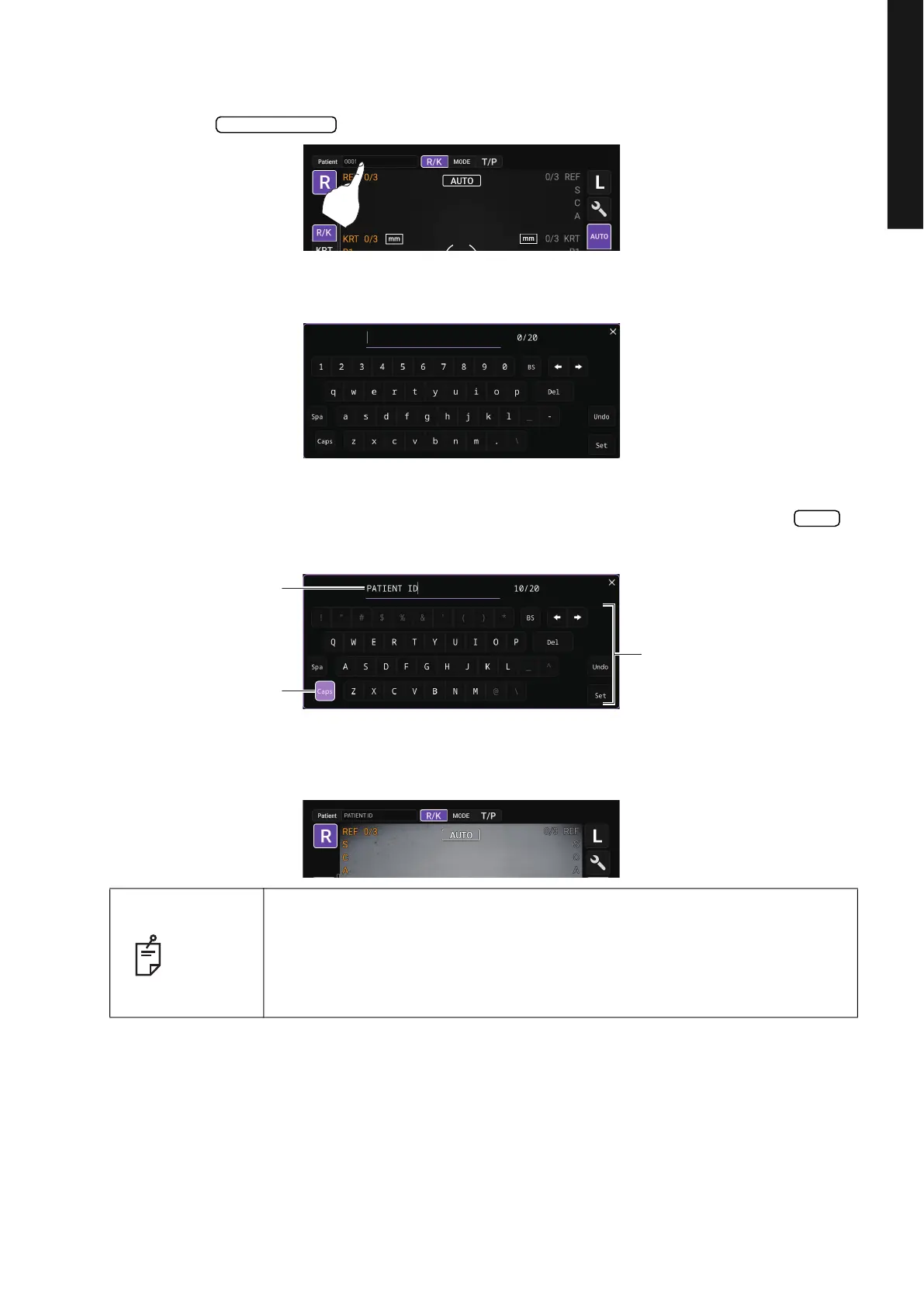3 Press the Patient ID input window and enter the Patient ID using the input buttons. Press the
