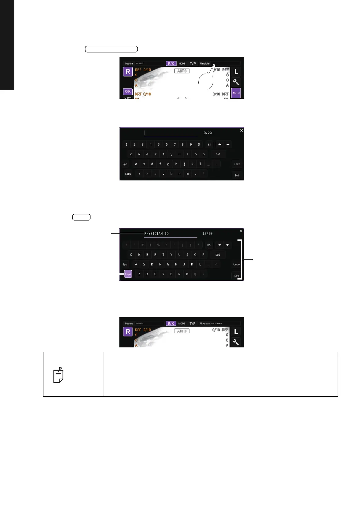 3 Press the Physician ID input window and enter the Physician ID using the input buttons. Press