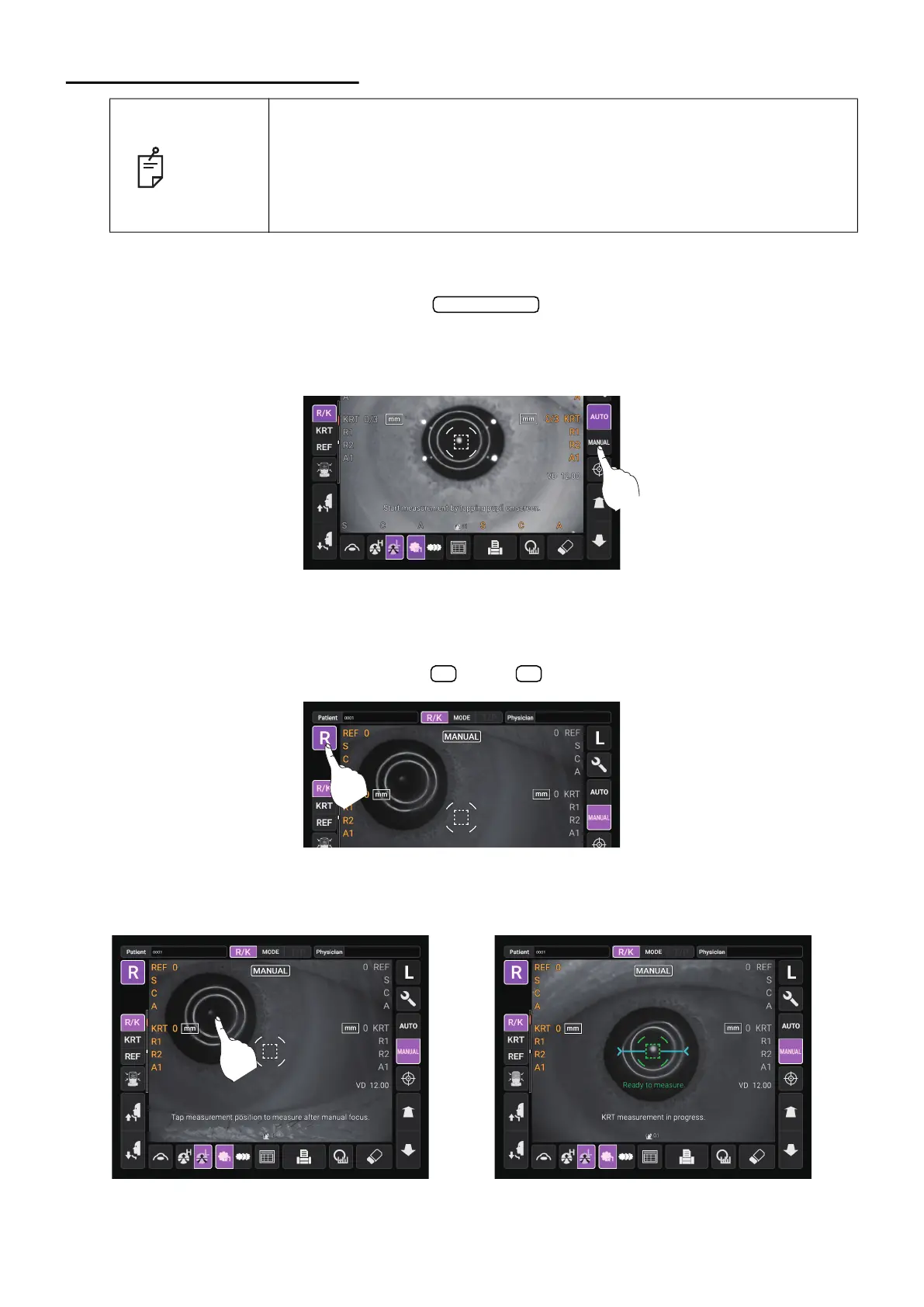 1 Select the right/left eye by tapping the button/ button.
