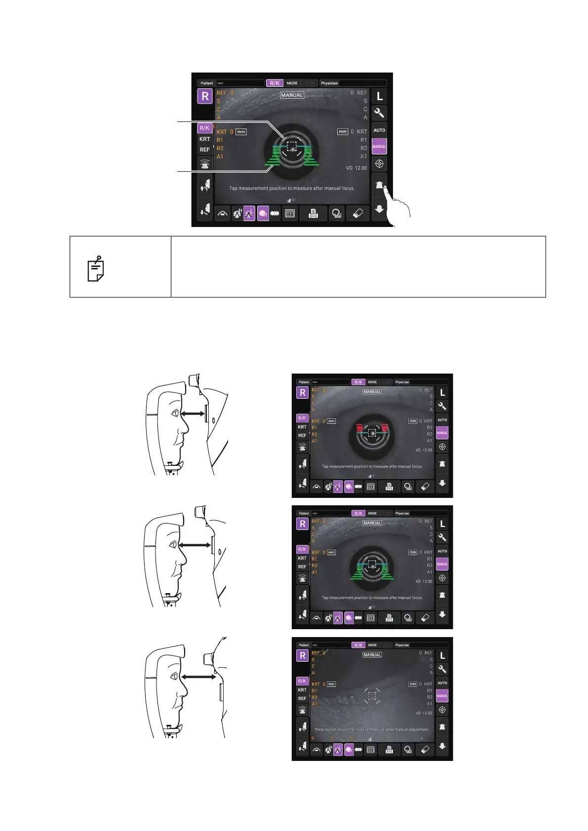 4 When the main body unit is brought closer to the patient's eye, Z alignment bars appear on the