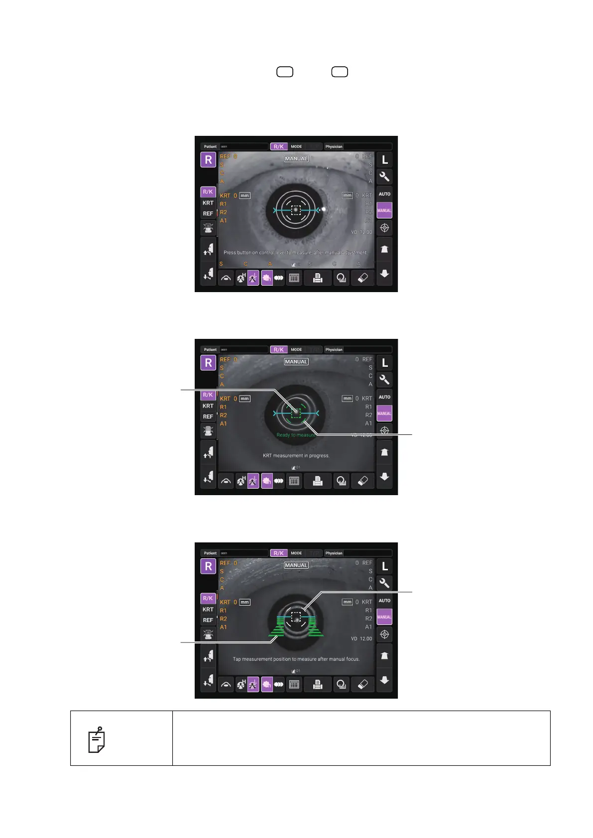 1 Select the right/left eye by tapping the button/ button or operating the control lever.
