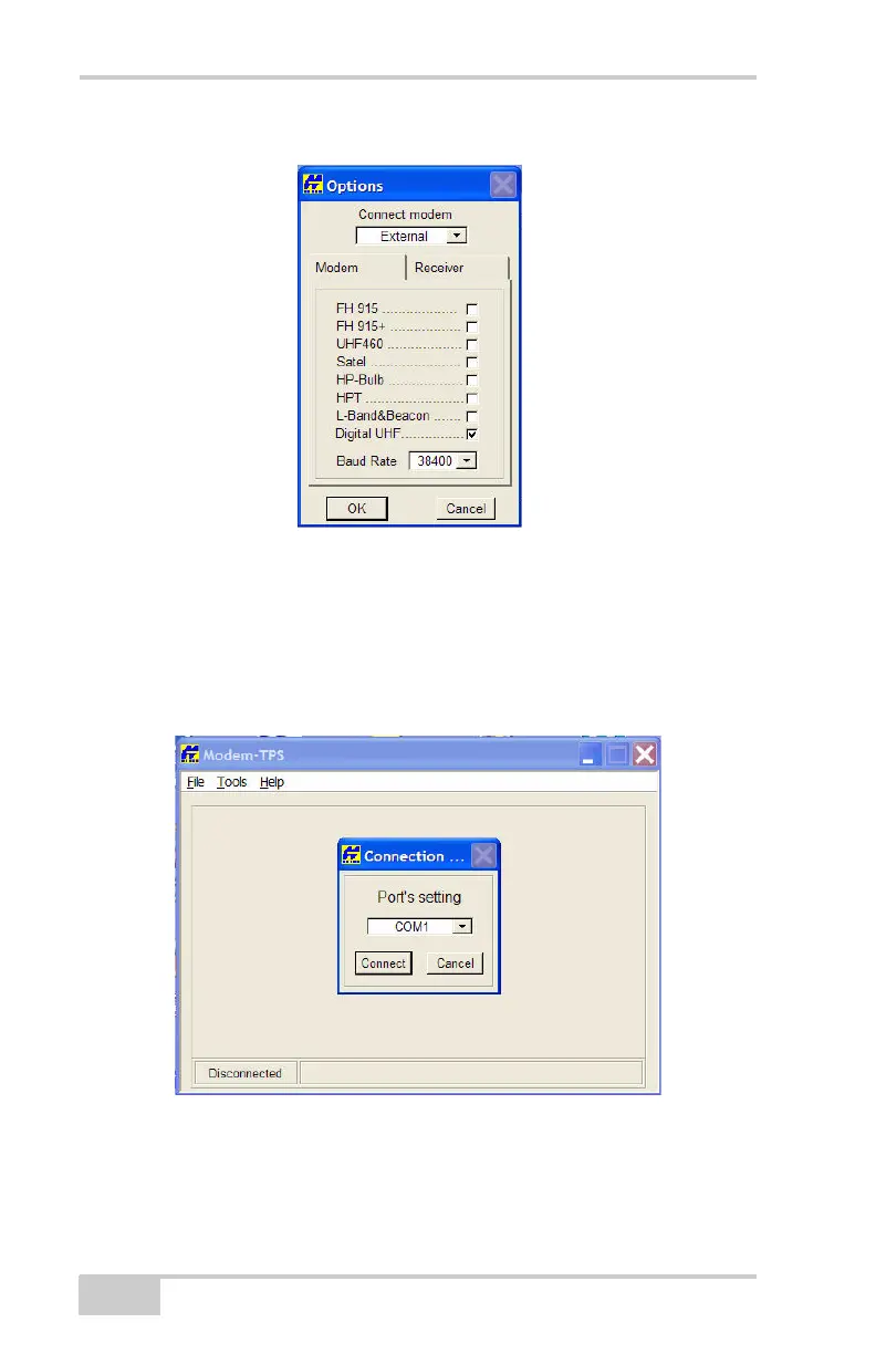 7. Go to FileConnect in Modem-TPS and choose the COM Port