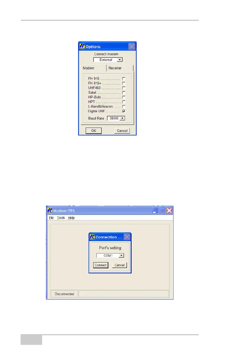 8. Go to FileConnect in Modem-TPS and choose the COM Port