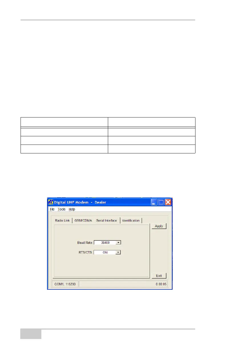9600 baud (default; recommended) DBPSK (recommended) or DQPSK