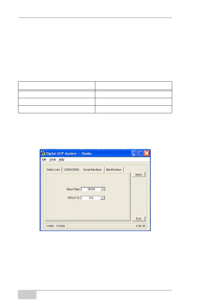 10. On the Serial Interface screen, select a baud rate for the modem’s