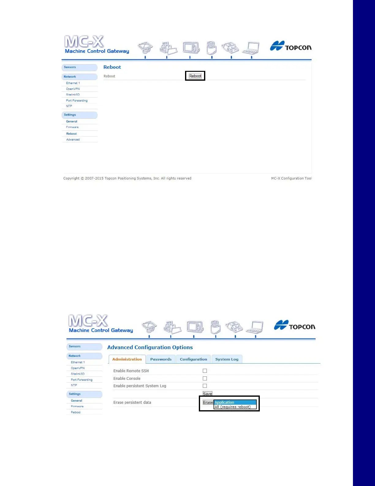 4. Locate and click the Reboot shortcut link at the top of the screen, or click SettingsReboot