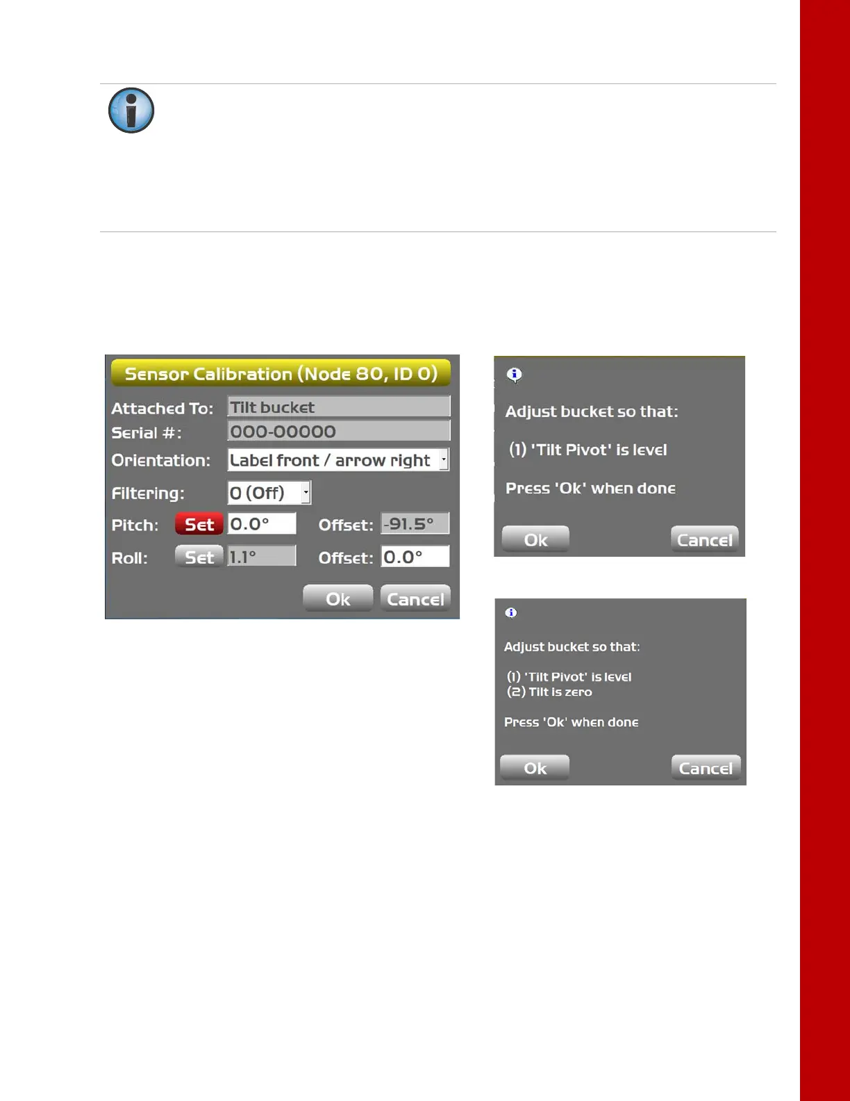 b. Dual: Ensure the tilt axis (or pin) is horizontal and the tilt is level. Tap Ok.