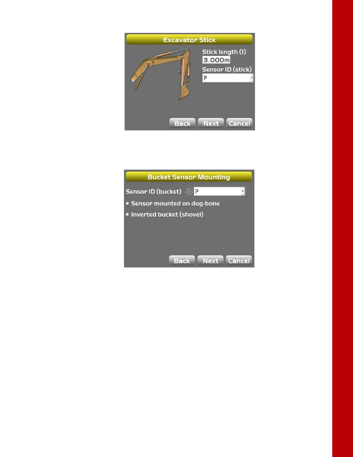 1. NavigatetotheExcavatorFrame/Sensorscreen.