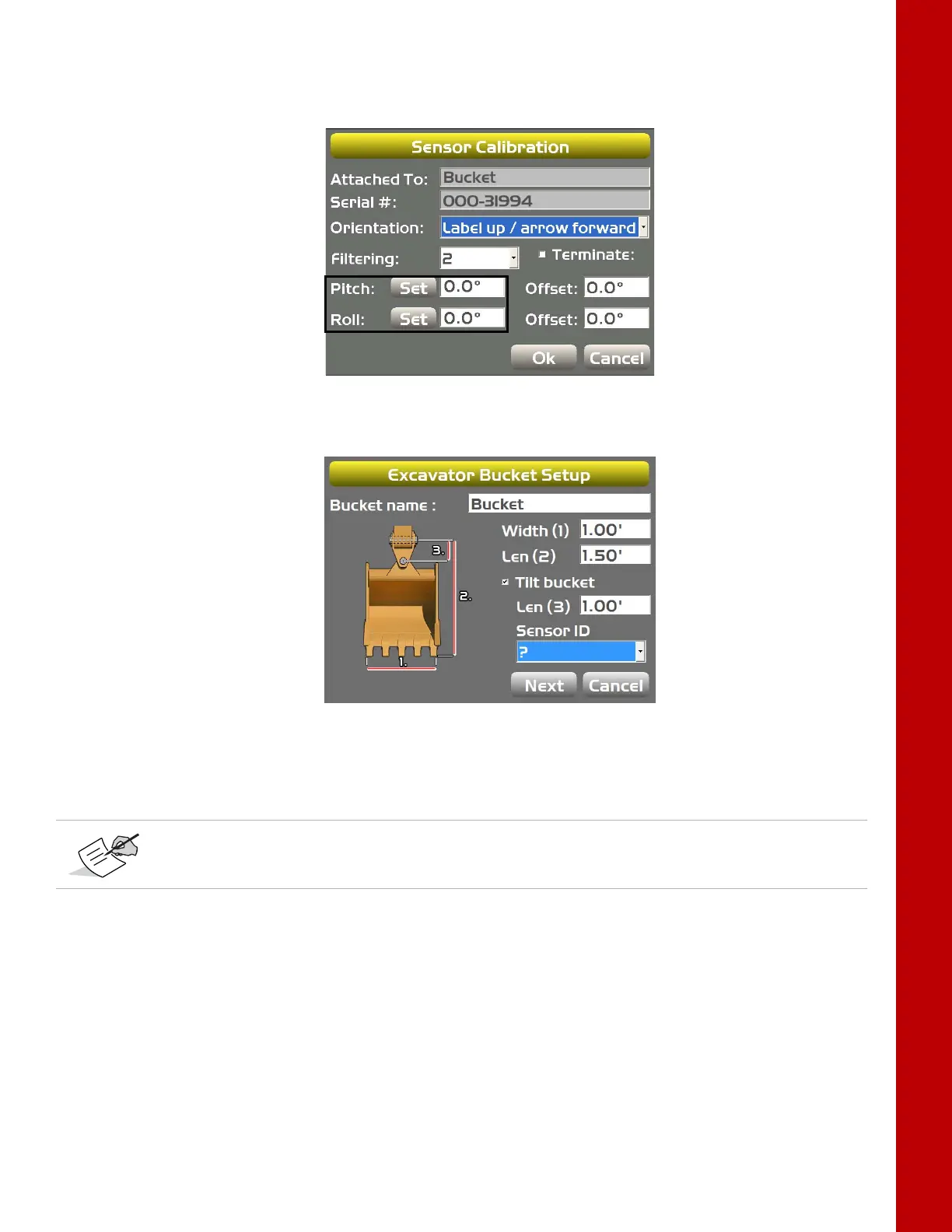 11. TapOK;theExcavatorBucketSetupscreenappears(Figure52).