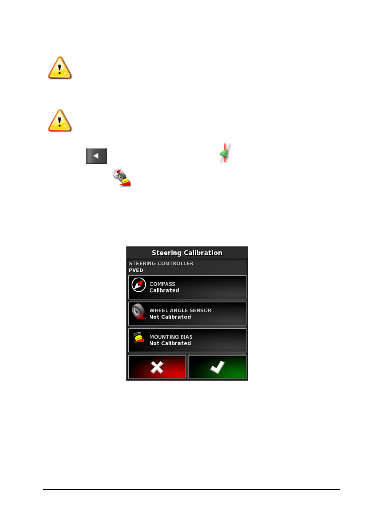 The Steering Calibration screen displays.