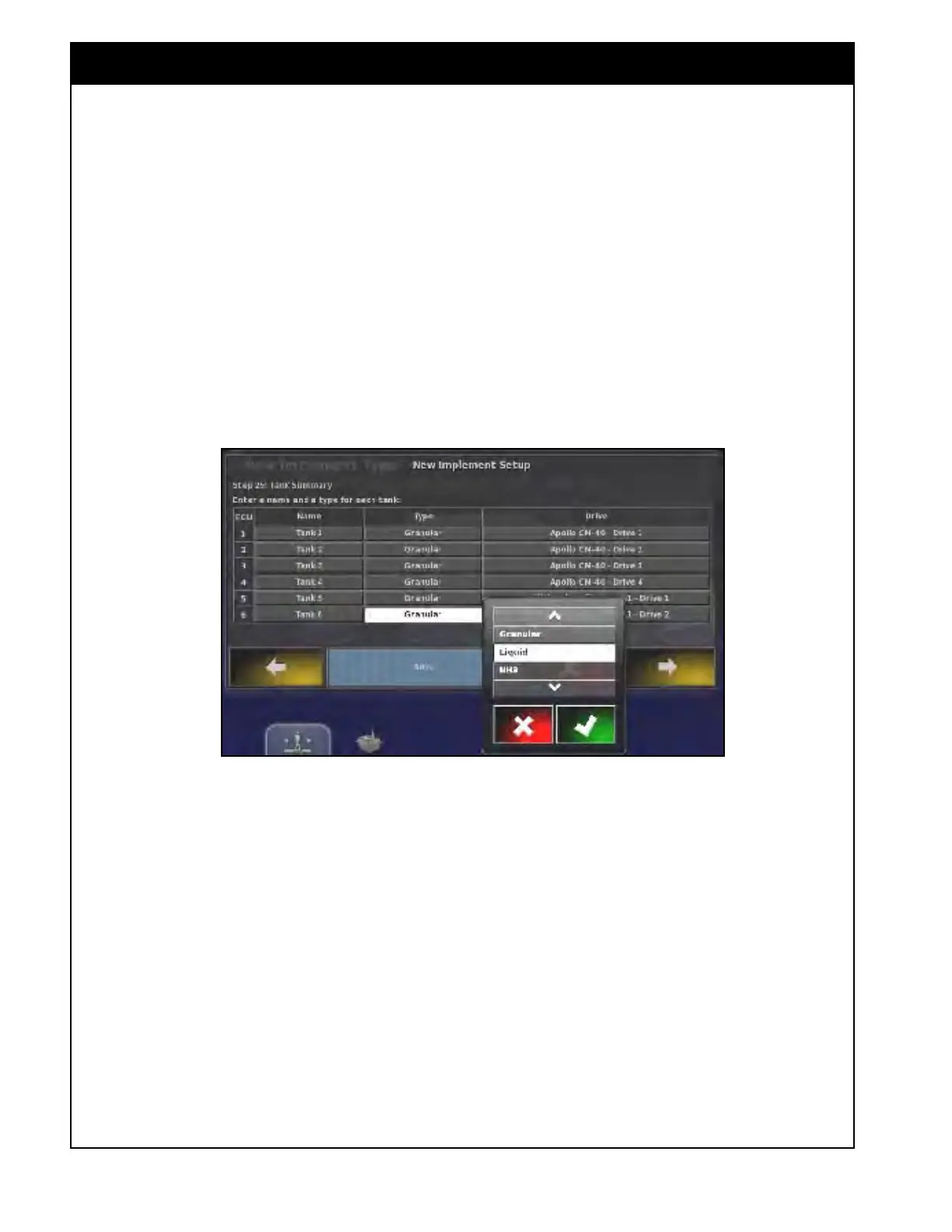 If using liquid or NH3 ensure that tank type is