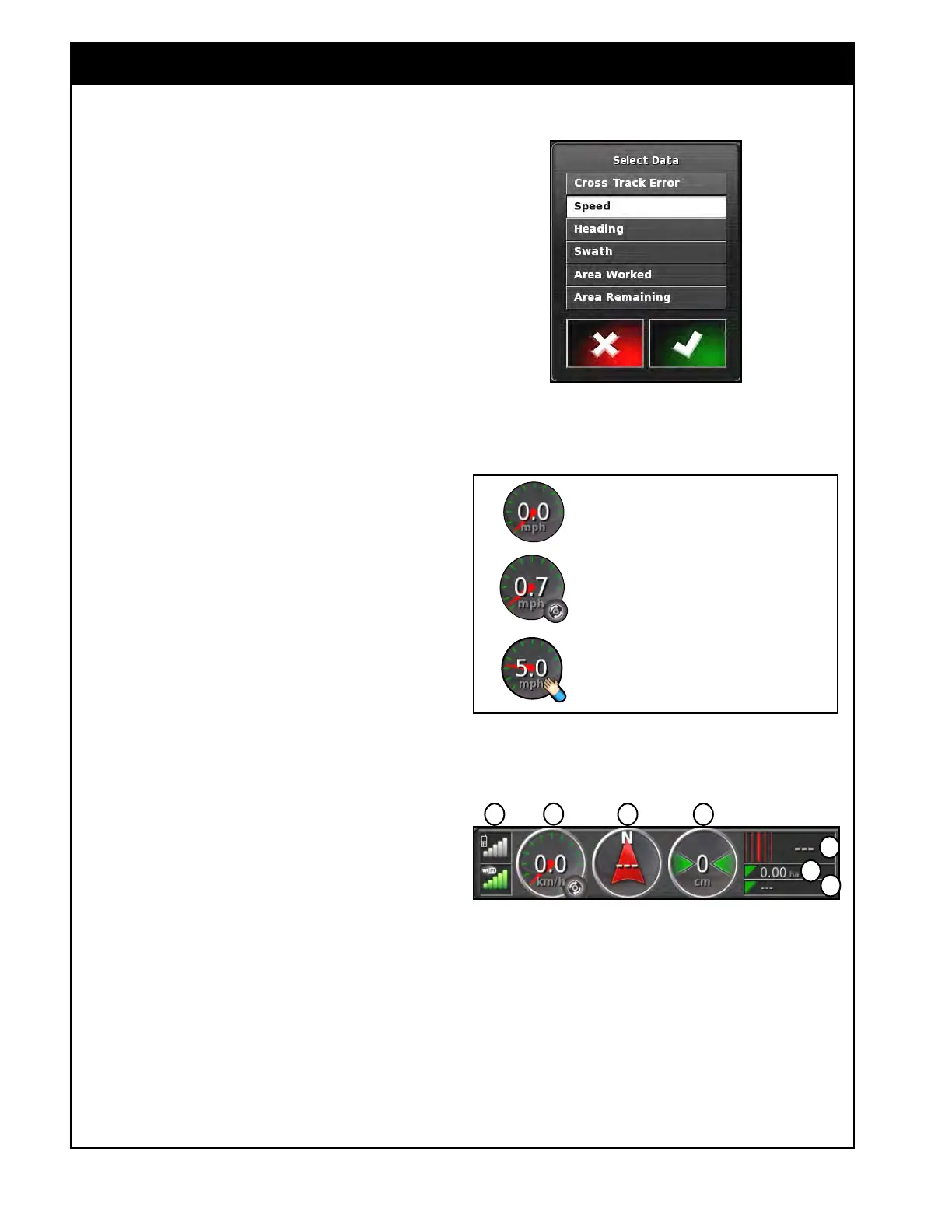 Speed, Heading, Cross Track Error or Swath