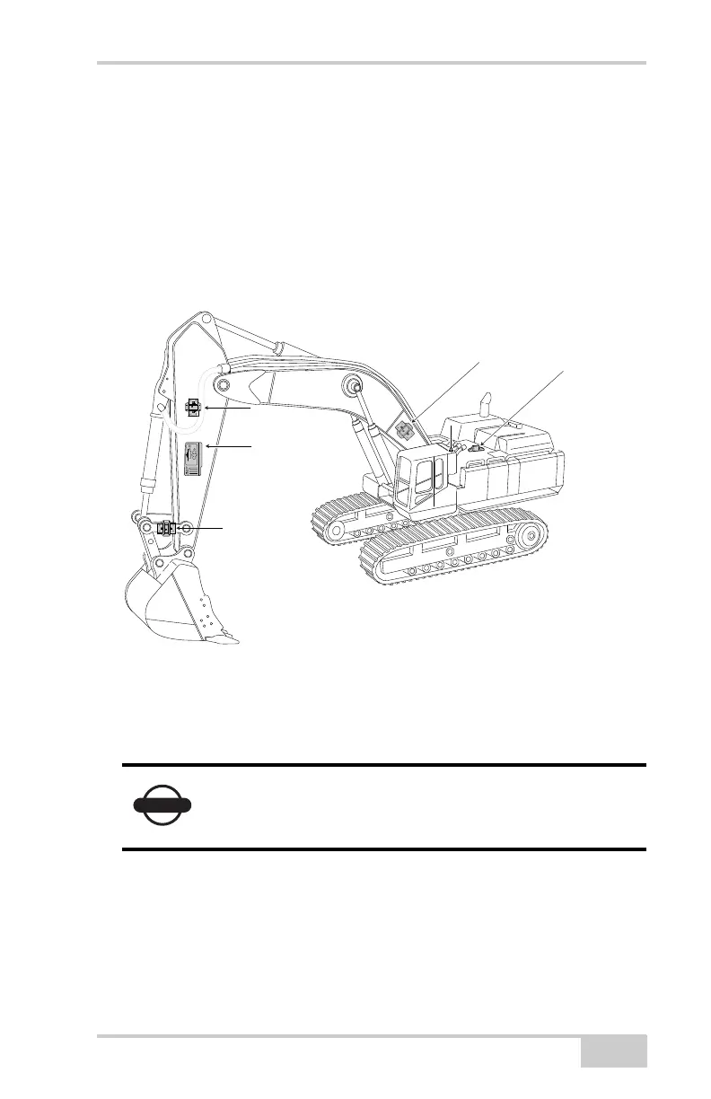 Figure 1-5. TS-1 Tilt Sensors and LS-B10W on Excavator