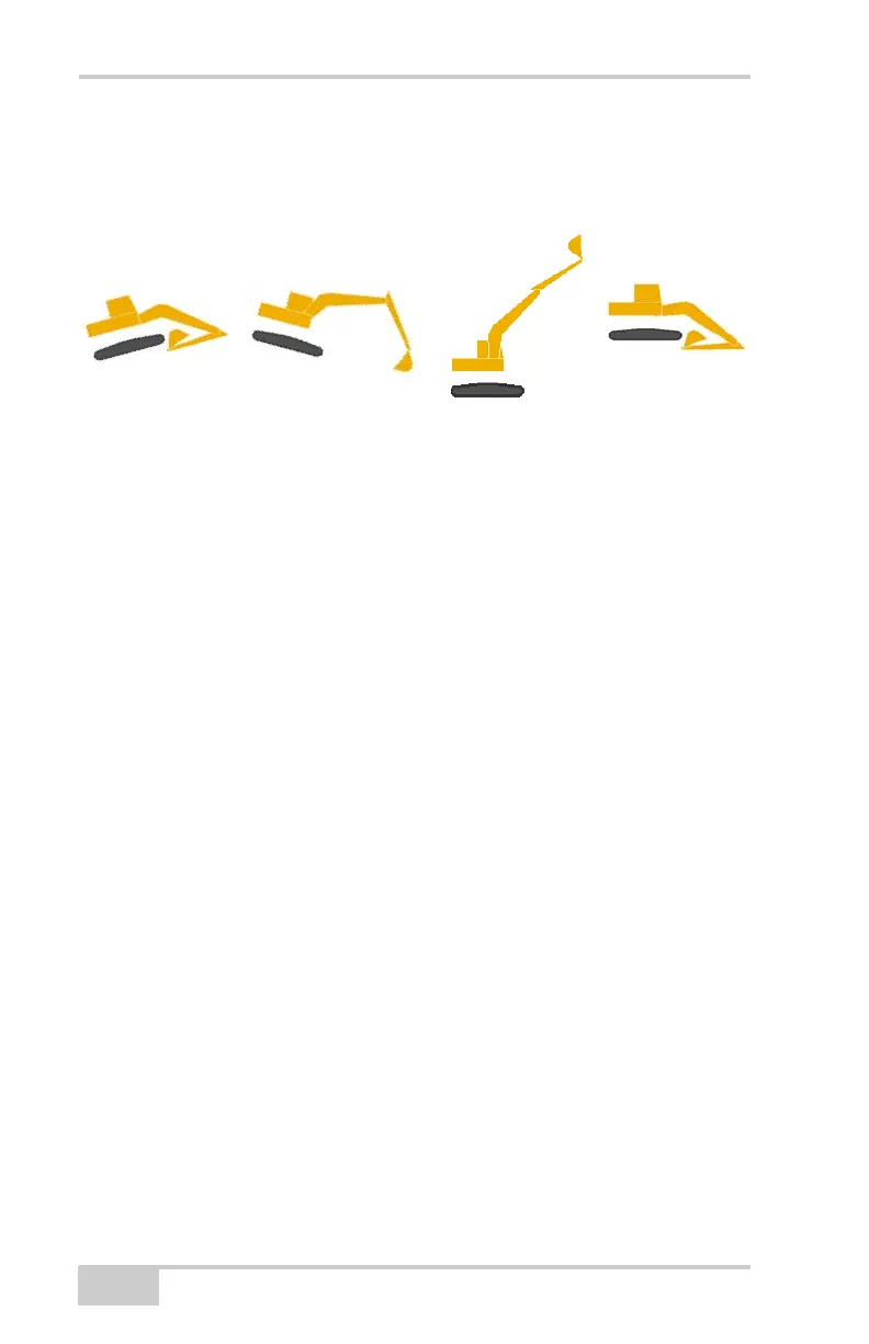 • For the Boom, Stick and Bucket, slowly move each through as