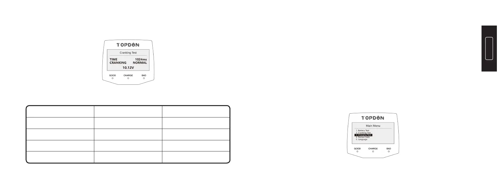 3) Press “ENTER” to initiate “Cranking Test” interface: