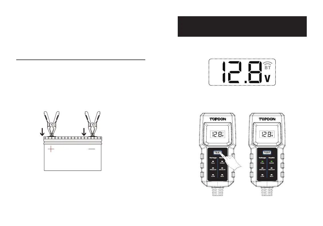 バッテリーテスターの電源を入れるとすぐに、バッテリーのリアルタイ