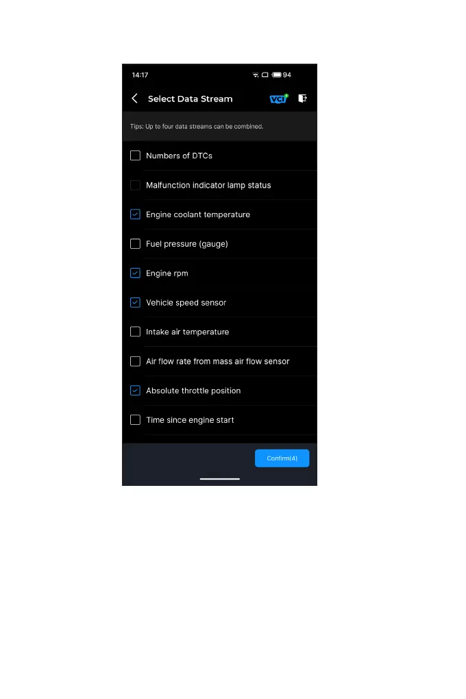 Tap Combine, and select up to four data streams.